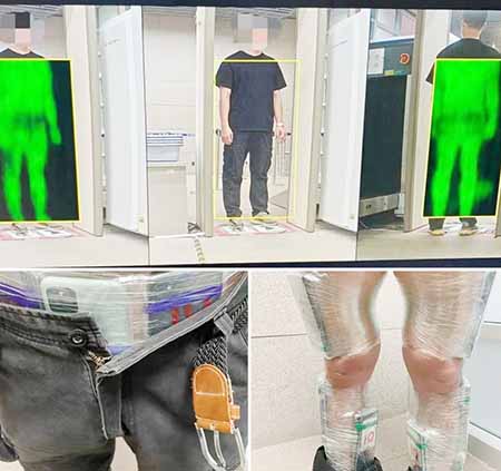 海關於十一月四日晚上八時,關員在關閘口岸出境旅客檢查區發現一名通關男子步履匆匆,懷疑其身上藏有可疑物品,遂指示該名男子接受檢查。經關員使用太赫茲人體成像安檢系統詳細檢查後,揭發其利用保鮮紙將三十部舊手提電話綁藏腰間、大腿及小腿,試圖偷運出境。