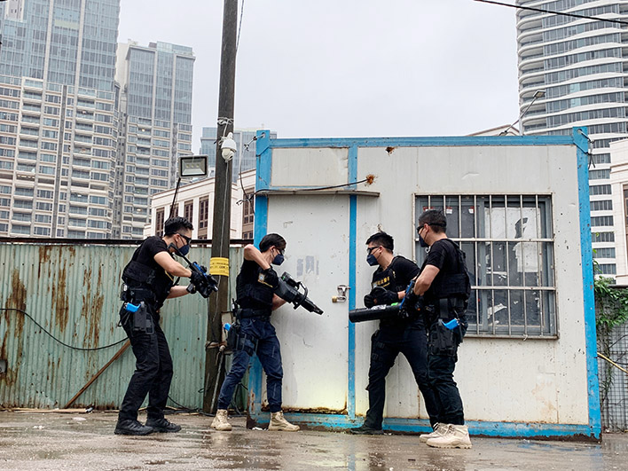 【特訊】為強化各刑事偵查、警務聯絡、刑事技術及通訊支援等單位的訊息通報、協調及聯動能力,提升偵查效率,尤其有力應對嚴重罪案,司法警察局舉行重大案件綜合演習,模擬一名大學生於校園內遭綁架,司警局多個部門隨即循多方面展開調查搜證,最終成功解救人質並拘捕綁匪。