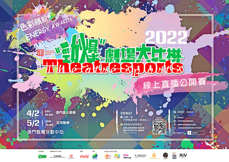 今年的【Theatresports勁爆劇場大比拼2022】線上直播公開賽更有來自國內不同城市( 北京﹑上海﹑南京﹑鄭州及深圳) 的年青人與澳門選手同台較技,以 「色彩繽紛 ENERGY AWAKEN」為口號,將即興戲劇﹑創意﹑活力與澳門市民一起將正面的能量 無限的潛能實踐到生活中 !