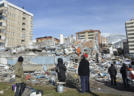 土耳其估計受災人口超過1350萬,總統埃爾多安宣佈10個受災省份實施為期3個月緊急狀態,全國下半旗致哀7日。他前往震央帕紮爾哲克鎮和災情最嚴重的哈塔伊省視察,承認當局在地震後的初步反應存在一些問題,涉及道路及機場,但救援行動已恢復正常,形容情形會一日比一日好。