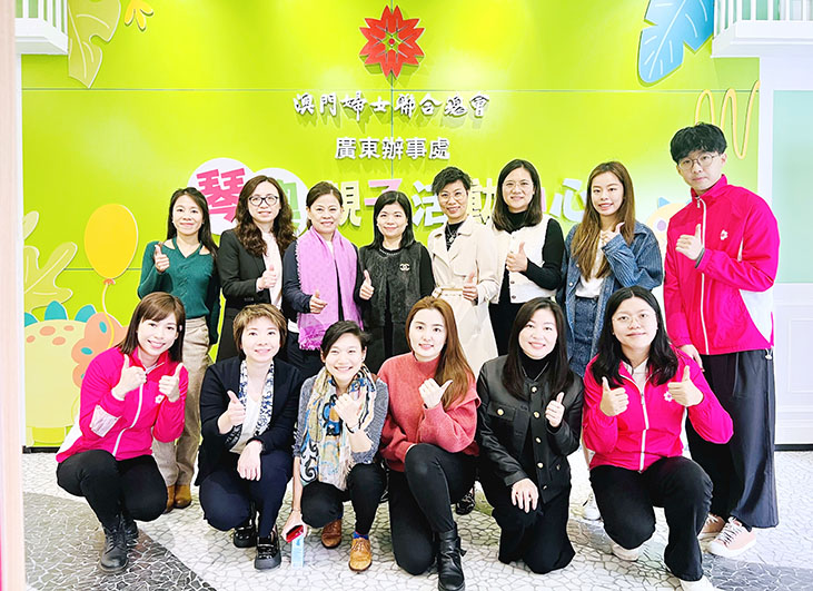 參訪團由婦聯副理事長鄺玉球和李彩紅率領,第一站到訪位於深合區的澳門婦聯廣東辦事處及琴澳親子活動中心,了解該中心的設施及提供的家庭服務,並親身參與手作坊活動,體驗為琴澳家庭開展的多元社會服務。