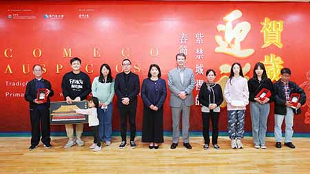 【特訊】文化局轄下澳門藝術博物館與故宮博物院合辦之「賀歲迎祥──紫禁城裡的春節文化」展已於周日(三月五日)圓滿結束,廣受觀眾好評。配合展覽推出的網上遊戲大獎賞亦於當日舉行頒獎儀式,由文化局代局長張麗珊、《澳門日報》助理總編輯鄭國偉、雅辰酒店集團澳門區營運副總裁兼澳門雅辰酒店總經理溫誠睿(Rutger Verschuren)向得獎者頒發獎品。