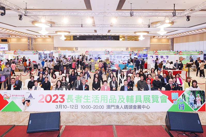護老者協會會長林燕妮、中聯辦社會工作部社區處四級調研員胡碩、社會工作局社會互助廳廳長蔡兆源、貿易投資促進局執行委員黃偉倫、消費者委員會宣傳教育組社務主管李詠琪、衛生局兼仁伯爵綜合醫院復康科主任高景輝、鏡湖醫院院長助理祁維、鏡湖護理學院護理及健康進修中心副主任李衛燕、街總理事長陳家良等出席「樂活‧同行」長者生活用品及輔具展覽開幕式。