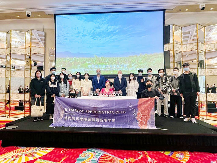 【特訊】附屬「澳門旅遊學院學生會」之「葡萄酒品嘗學會」共二十位學生獲「永利餐飲管理學院」邀請參與於2023年2月24日在永利皇宮舉行之「葡萄酒大師班」,由世界葡萄酒大師趙鳳儀女士及國家一級品酒師李德美先生面授國產葡萄酒知識。