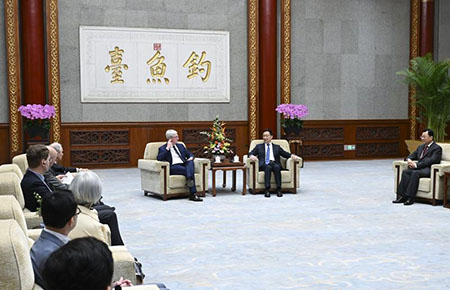 【中新社北京3月28日電】 3月28日,中國國家副主席韓正在北京同清華大學經濟管理學院顧問委員會委員代表座談。