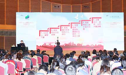 陳虹以「人民至上」、「高質量發展」和「團結奮鬥」等關鍵詞,以點帶面介紹兩會的重大原則、會議成果及政治體制等內容,特別講述近年國家的教育政策及教育發展成就,並透過圖片及視頻展示兩會的會議盛況,讓與會者感受禮兵護送《中華人民共和國憲法》進場及習近平主席宣誓等激動人心的時刻,勉勵本澳青年為強國建設、民族復興貢獻力量,努力開創繁榮發展新局面。