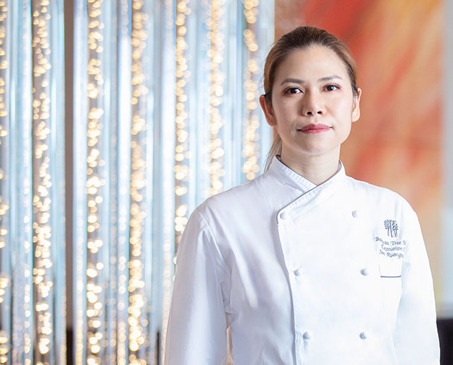 將藝術融入泰餐;出生並成長於泰國的 Jan 是一名獲獎無數的烹飪藝術家,並擁有一支才華橫溢的烹飪團隊,各成員均來自不同的米芝蓮星級餐廳。由 Jan 精心打造的餐單中,不僅詮釋了泰式美饌對香料、食材、香草以及顏色調和的講究,更將藝術和創意融入菜品,透過獨具風味的地道佳餚犒賞食客。
