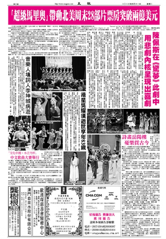 「超級馬里奧」帶動北美周末28部片票房突破兩億美元