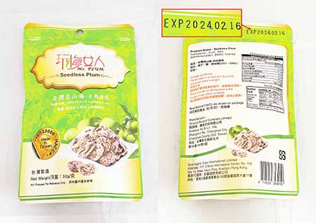 檢出含過量防腐劑的預包裝西梅,產品名稱為“PITTED DRIED PLUMS(PITTED PRUNES)”,品牌名稱為“Mariani”,淨重18安士,包裝上標示之最佳食用期限為2024年5月,檢出每公斤含652毫克山梨酸,超出本澳第7/2019號行政法規《食品中防腐劑及抗氧化劑使用標準》的規定。而檢出含過量甜味劑的預包裝高山梅,產品名稱為“台灣高山梅-去籽原味”,品牌名稱為“玩梅女人”,淨重為30克,包裝上顯示之“此日期前最佳”為2024年2月16日,檢出每公斤含14,400毫克阿斯巴甜,超出本澳第 12/2018號行政法規《食品中甜味劑使用標準》的規定。