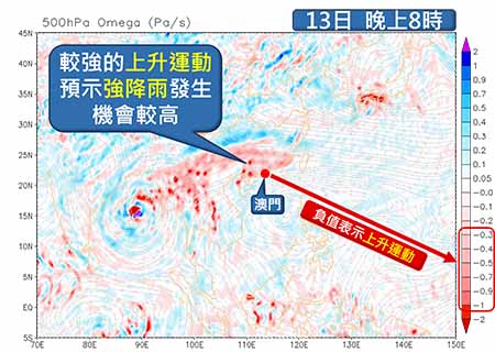 氣象局表示,據目前預報資料顯示,受高空擾動影響,未來兩、三日華南沿岸天氣較不穩定,週六至週日(十三至十四日)珠江口一帶或會出現強降雨天氣,本澳較大機會出現頻密的驟雨及雷暴。