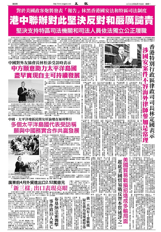 對於美國政客炮製發表「報告」抹黑香港國安法和特區司法制度 港中聯辦對此堅決反對和嚴厲譴責 堅決支持特區司法機關和司法人員依法獨立公正履職
