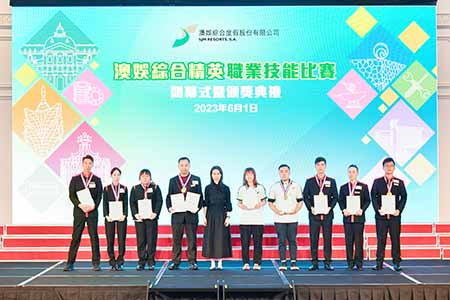 【特訊】由澳娛綜合度假股份有限公司(「澳娛綜合」)舉辦的「澳娛綜合精英職業技能比賽」已於五月順利完成各項選拔賽,日前於上葡京禮堂舉行閉幕儀式暨頒獎典禮,向各項選拔賽優勝者頒發獎項。是次「澳娛綜合精英職業技能比賽」獲超過130名團隊成員踴躍參與,比賽項目覆蓋博彩娛樂、中西餐飲及服務、酒店房間整理及設施維護三大項目,通過比賽推動團隊成員在專業技能上的提升與互動交流。選拔賽優勝者會獲委派代表澳娛綜合參與本地及公開賽事,爭取佳績。
