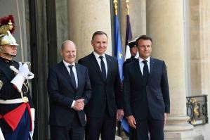 “魏瑪三角”是法國、德國、波蘭三國協調立場、加強合作的定期會晤機制。在今年2月的德國慕尼克安全會議期間,三國領導人曾舉行會談。