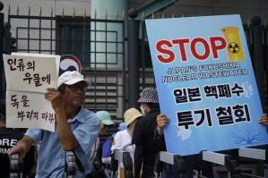 當天,韓國在野黨“正義黨”在光化門廣場遊行集會,還有部分民眾在韓國外交部大樓外集會,他們手舉標語高呼口號,對日本政府不顧鄰國及國際社會擔憂執意推動核污染水排海計劃表示憤怒。受2011年發生的大地震及海嘯影響,日本福島第一核電站發生1至3號機組堆芯熔毀事故,產生大量核污染水。日本政府2021年4月13日決定,將福島第一核電站上百萬噸核污染水過濾並稀釋後排入大海。