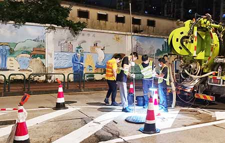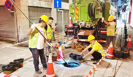 同時,市政署持續監察各市政雨水泵房運作,包括檢查泵房內水泵、電動水閘、後備電源、遠程監察系統及遠程控制系統的運作情況。當氣象局發出黃色暴雨或以上信號時,市政署立即啟動暴雨緊急應變小組機制,按實時海潮高低,利用遠程端開動水泵抽排雨水,派員巡查雨水泵房運作,按情況調控水泵加快排洪。而遇暴雨或颱風等情況,緊急清渠應變小組人員、外判清渠工作人員會到各水浸黑點清理路邊雨水井沖積的垃圾,並在安全情況下打開渠蓋,加快下水道排洪能力。