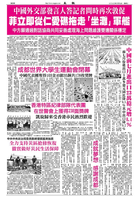 中國外交部發言人答記者問時再次敦促 菲立即從仁愛礁拖走「坐灘」軍艦 中方願通過對話協商共同妥善處理海上問題維護雙邊關係穩定