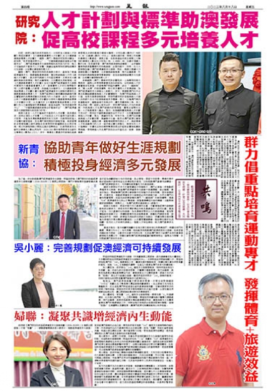 是次內容關乎各行各業的未來發展,她鼓勵居民積極關注、共同參與,並期望經過廣泛諮詢,能凝聚共識、蓄成合力,以此增強經濟內生動能,在實現新興產業較快發展的同時,保持旅遊娛樂業持續發展,更好優化中小企業營商環境,從而促進民生改善,讓各階層居民都能切實感受到經濟適度多元帶來的好處。婦聯總會作為愛國愛澳社團,未來將適應新形勢新變化創新工作內容,繼續發揮政府與居民間的溝通橋樑作用,配合諮詢工作廣泛收集意見,建言獻策,擔當好婦女在社會中的獨特作用,助力居民把握經濟轉型的發展機遇,共建美好繁榮家園。