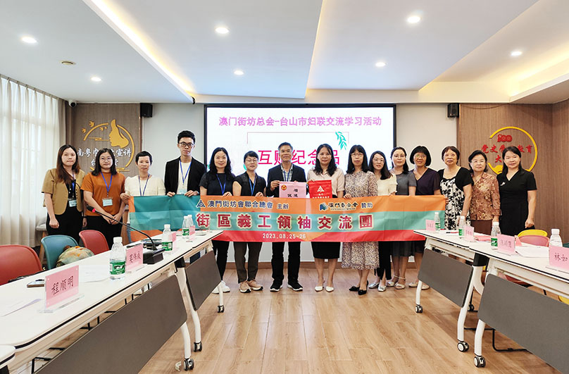 【特訊】日前,澳門街坊會聯合總會副理事長兼秘書長莫偉成率領門街坊總會義工領袖一行29人到台山市婦聯進行參觀交流學習活動,獲台山市婦女聯合會黨組書記、主席林如寶,副主席胡潔明、陳穎茵等負責人熱情招待,雙方就兩地婦女、兒童等社會服務工作深入交流。