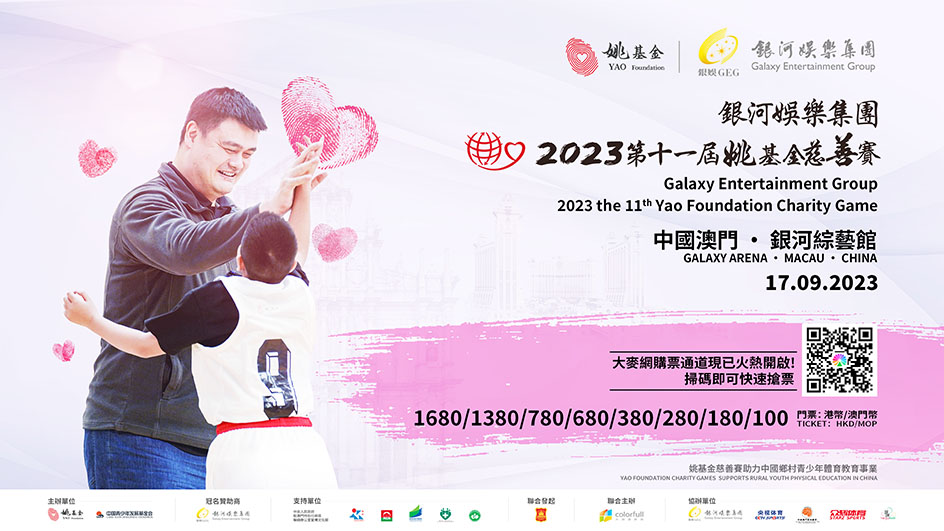 【特訊】由北京姚基金公益基金會和中國青少年發展基金會發起主辦,中國籃球協會聯合發起,中央人民政府駐澳門特別行政區聯絡辦公室宣傳文化部、澳門特別行政區政府體育局、旅遊局、教育及青年發展局、衛生局、中國澳門體育總會聯合會共同支持,大顏色文化科技有限公司聯合主辦及運營,中央廣播電視總台體育頻道、銀河娛樂集團、中國澳門籃球總會、北京眾輝國際體育管理有限公司、盛匯策劃有限公司協辦,並由銀河娛樂集團冠名贊助的「銀河娛樂集團2023第十一屆姚基金慈善賽」門票於8月31日中午12點開始公開發售。