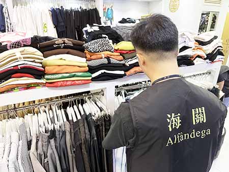 早前,澳門海關在巡查市面店舖期間,發現一間位於南灣的時裝店出售的品牌服裝造工粗糙,售價亦明顯較正品價格低廉,涉嫌為侵權產品。海關其後作出情報搜集及深入調查,發現其於白馬行的某商場內亦設有店舖,且售賣的服裝同樣有侵權之嫌。於8月31日,海關見時機成熟,派員同時對兩店採取行動,共查獲42件涉嫌侵權服裝,以正貨價格計算約值52萬澳門元。部分物品經相關品牌鑑定人進行鑑定,證實為侵權產品。一名本地女子同為兩店的負責人,連同另一名本地女性員工被帶走調查。