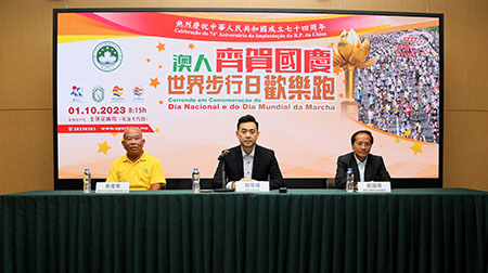 【特訊】為熱烈慶祝“中華人民共和國成立七十四周年”,並響應國際群眾體育協會提倡的“世界步行日”,體育局將於10月1日早上8:15時在金蓮花廣場舉行 “2023澳人齊賀國慶世界步行日歡樂跑”。活動當日將舉行國慶升旗禮、歡樂跑及步行慶祝活動,讓澳門市民透過齊參與有益身心的體育項目,一同感受國慶的喜悅。