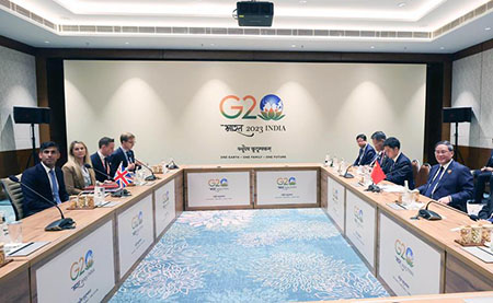 【中新社新德里9月10日電】(記者 郭超凱)當地時間9月10日上午,中國國務院總理李強在新德里出席二十國集團領導人峰會期間會見英國首相蘇納克。