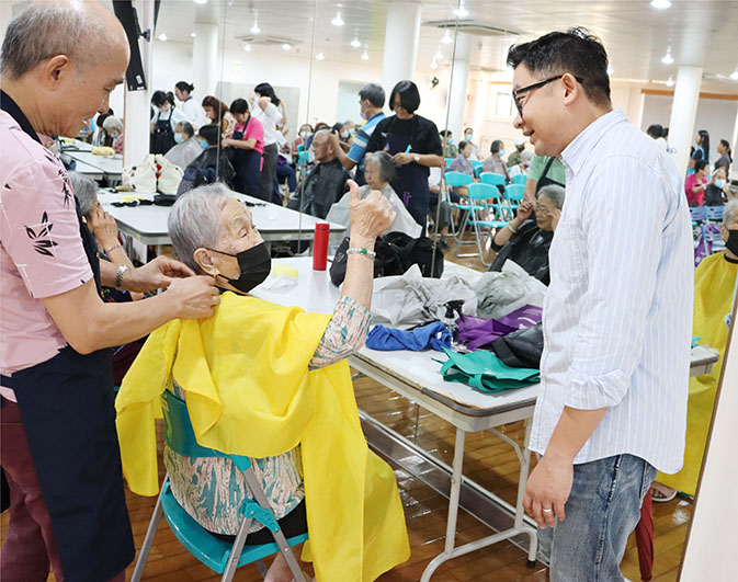 「老友記」大讚探訪他們的年青人,知道他們都是在上班期間抽取空餘時前訪中心做義工,感恩社會熱心人士的關懷。他們相互分享近況及交流,在理髮的過程中,義工們得知「老友記」喜歡短頭髮好梳理,專心按照他們心目中的理想髮型剪髮,「老友記」非常感恩大家的服務。