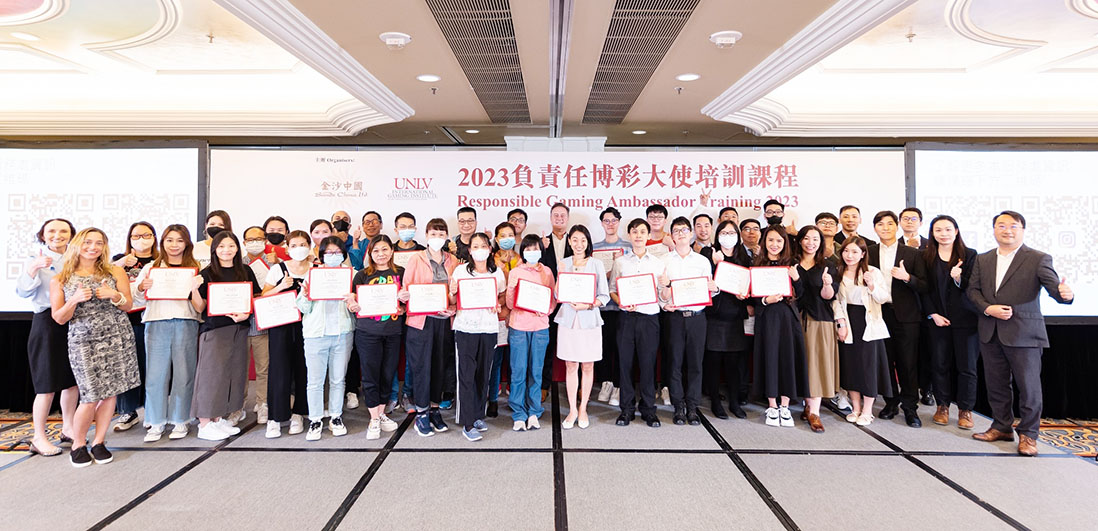 逾60名團隊成員完成課程後,均獲頒由美國內華達州立大學拉斯維加斯分校發出的負責任博彩大使課程證書,以及金沙中國負責任博彩大使徽章,標誌著他們正式成為負責任博彩大使的一員。他們需要於各自不同的部門及崗位上處理負責任博彩的推廣及報告等相關工作,並運用學到的專業知識及技巧,為有需要人士提供支援及轉介服務。