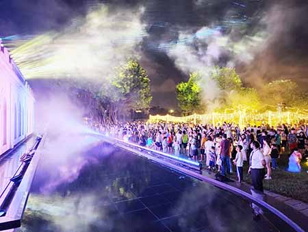 “月光下的大炮台”活動於10月2日至6日期間繼續舉行,大炮台花園將延長開放時間至晚上10時,增設夜間遊覽,每日傍晚6時至晚上9時30分設有音樂表演;晚上7時至9時30分期間設有燈光秀,每30分鐘一場,透過精心設計的燈光效果與古典音樂,以及由本地音樂人共同創作的澳門回歸20周年紀念歌曲“蓮成一家”相結合,在大炮台夜空中帶來視覺和聽覺的雙重享受。