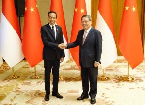 【中新社北京10月17日電】中國國務院總理李強10月17日上午在釣魚台國賓館會見來華出席第三屆“一帶一路”國際合作高峰論壇並進行國事訪問的印度尼西亞總統佐科。