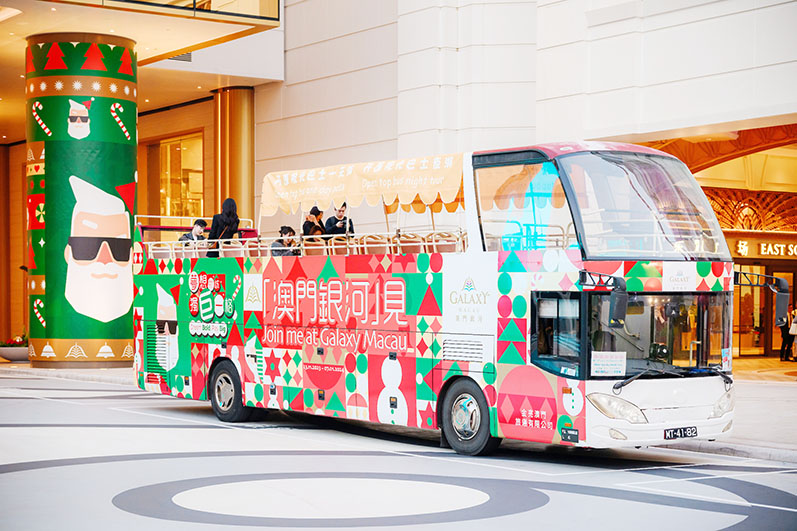 「澳門銀河」以「夢想就該獨巨一格」開篷觀光巴士將慶典帶到澳門街頭,把節日氛圍延伸到綜合度假城以外。由現在起至12月31日,賓客可在觀光巴士上遊覽澳門超過10 個知名地標和世界遺產地點,在這節日季節探索澳門的風貌。開篷觀光巴士將途經多個旅遊景點,包括媽閣廟、澳門旅遊塔及澳門科學館等,12月起夜間更可於巴士上欣賞「澳門銀河」獨一無二的節慶燈光表演。