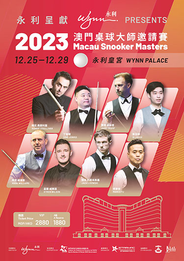 【特訊】由永利渡假村(澳門)股份有限公司主辦、澳門特別行政區政府體育局支持、澳門星娛樂製作有限公司承辦,澳門桌球總會、帆升體育協辦的《永利呈獻 ─ 2023澳門桌球大師邀請賽》將於 12 月 25 日至 29 日假永利皇宮宴會廳舉行。