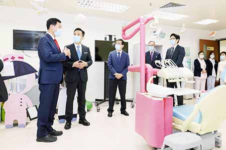 隨後,羅奕龍局長、鄭成業副局長陪同代表團觀察了黑沙環衛生中心,並向代表團詳細介紹了黑沙環衛生中心的日常運作情況、在社區醫療衛生服務範疇的定位、服務網絡的分佈、社區醫療人員資源分配等情況。目前,本澳共有九間衛生中心和2間衛生站,以日間服務形式為全澳居民提供以人為本的初級衛生保健服務,具有服務全面、覆蓋面廣和可及性高的特點,基本達到世界衛生組織倡議的全民健康覆蓋目標。