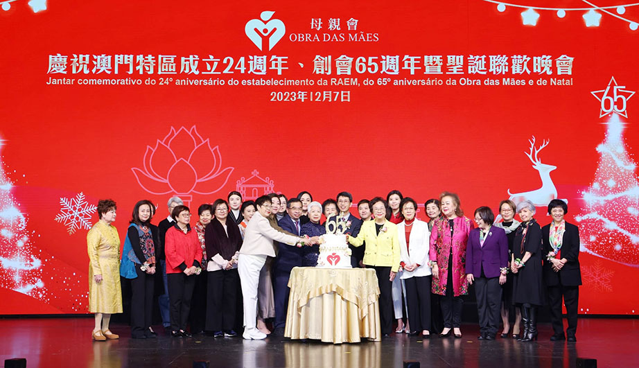 母親會監事長賀定一在晚會開始前主持切蛋糕儀式時感言: 母親會創會至今一晃已65載,在65個寒暑裡,仝仁均擁懹為社會服務熾熱的心,為弱勢獻關愛,為長、幼服務竭盡所能,並感謝特區政府、中聯辦、社工局及社會各界對母親會的厚愛,感謝該會會員與母親會風雨同行,有信心未來將更創輝煌。理事長江陽致辭時表示,只有國泰方能民安,國家的強盛是澳門特區長期繁榮穩定的有力保證,國家永遠是澳門發展的堅強後盾,澳門特區成立24年來,經濟發展,族群和諧,民生改善,在社會服務方面亦得到蓬勃的發展,「一國兩制」得到成功實踐,感恩祖國,澳門蓮花寶地不惧風雨,母親會將繼續支持特區政府依法施政,共同為澳門的美好明天努力。江陽續表示,母親會自1959年創會以來,一直秉承辦會宗旨,關懷弱勢、扶助貧困病患,並透過屬下8個社服機構,開展幼兒托管照顧、長者院舍、日護照料、家援服務以及長者文康活動等服務,經過數十年不懈的努力和發展,長幼服務均得到了社會各界的認同和支持。隨後,會長林笑雲及副理事長飛曼華分別以中、葡文祝酒時表示,藉著今晚大家歡聚一堂,共同為澳門回歸祖國24週年、母親會創會65週年,為社會和諧、經濟繁榮,市民安居樂業,生活愉快舉杯,祝願祖國繁榮昌盛,大家身體健康,家庭幸福!母親會會務百呎竿頭,繼續進步!!!