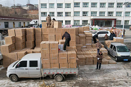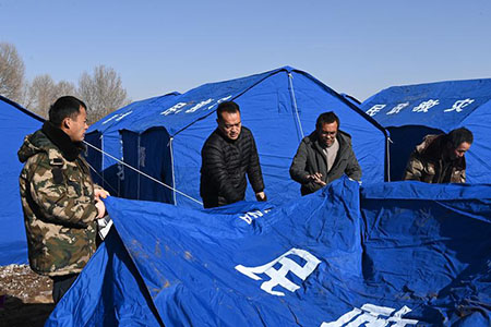 “保障救援物資拉運的基礎上,確保受災民眾有衣穿、有飯吃、不受凍。”甘肅省應急管理廳新聞發言人韓樹君介紹稱,從19日上午開始,緊急調配饅頭、方便面等食品和各類取暖設施,並配送油品194噸。特別注重對棉帳篷、摺叠床、棉被、棉衣、防潮墊等物資儲備調配。