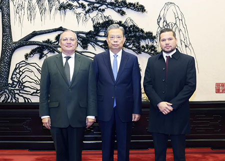 【中新社北京1月30日電】全國人大常委會委員長趙樂際30日 在北京會見哥倫比亞國會主席兼參議長納梅和眾議長卡列。