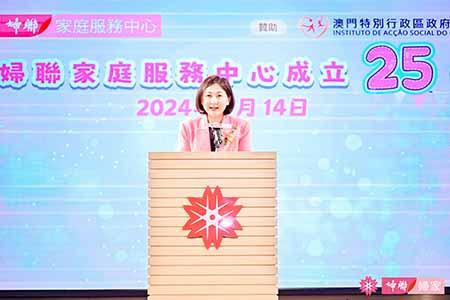 澳門婦女聯合總會理事長袁小菱致辭表示,婦聯家庭服務中心便是婦聯最先投入使用的服務陣地,廿五年來,服務面向廣大居民和家庭,提供婚姻及家庭諮詢輔導、家庭生活教育、法律諮詢服務等,持續在社區最前線服務廣大居民,服務由二○一三年的四萬多人次,提升至二○二三年超過卅六萬人次,增幅達九倍,而在個案方面,過去五年間的求助數字從九百八十多人次,提升至超過一千五百人次,數字反映中心為促進社區和諧發展作出了不懈的努力。