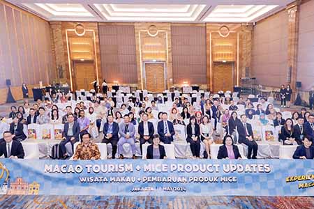 澳門“旅遊+會展”最新產品資訊推介會及洽談會昨(8日)在雅加達鉑爾曼中央公園酒店(Pullman Jakarta Central Park)舉行。澳門旅遊局局長文綺華、ASTINDO印尼旅行社協會全國理事會財務總監Chris Subianto、澳門貿易投資促進局行政管理委員會執行委員黃伊琳、橫琴粵澳深度合作區經濟發展局文旅會展商貿處處長林衍傑等嘉賓,聯同澳門六大綜合度假休閒企業代表、澳門和印尼業界等約100人出席活動。