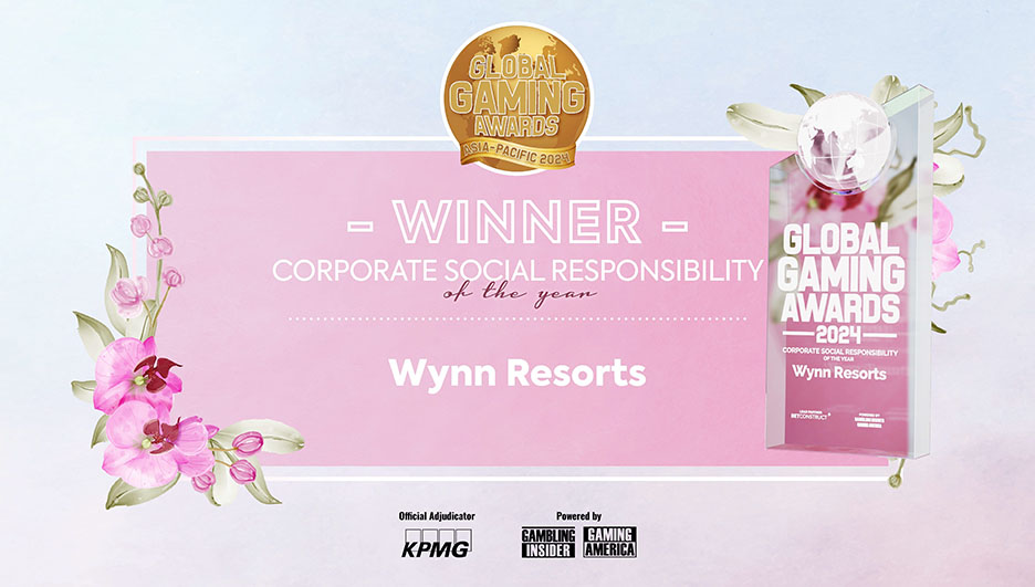 【特訊】永利於 2024 年全球博彩大獎(亞太區)(Global Gaming Awards Asia-Pacific 2024)中榮獲年度企業社會責任大獎(Corporate Social Responsibility of the Year),從其他七家候選機構當中脫穎而出榮獲此項殊榮。