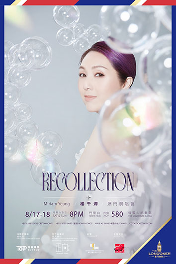 萬勿錯過8月17日至18日於倫敦人綜藝館舉行之「楊千嬅 RECOLLECTION 澳門演唱會」,走進楊千嬅的音樂世界,感受歌聲中湧動的情感與獨特魅力。