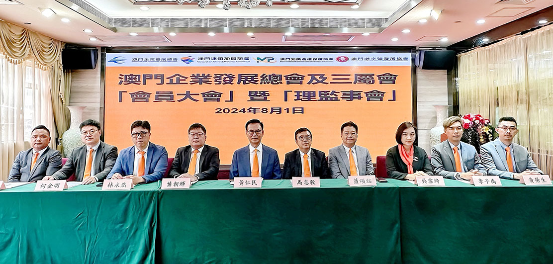 【特訊】澳門企業發展總會及三屬會於本月一日假富豪酒店召開總會第二屆、澳門連鎖加盟商會第五屆、澳門老字號發展協會第二屆、澳門知識產權保護商會第二屆第三次會員大會,會上出席成員及其授權代表選舉產生新一屆會員大會及理監事會架構,審議並通過各會會章修改,新一屆各會主要負責人為:澳門企業發展總會主席馬志毅、理事長黃仁民、監事長何金明、秘書長吳雪綺;澳門連鎖加盟商會主席黃仁民、理事長吳雪綺、監事長何金明、秘書長曾增偉;澳門老字號發展協會會長葉朝輝、理事長李子禹、監事長曹世興、秘書長陳仲崑;澳門知識產權保護商會會長蕭頌銘、理事長林永然、監事長黃榮生、秘書長許可立等。會員大會之後隨即進行的是總會及三屬會新一屆第一次理監事會,會上報告及審議通過多個議程事項。