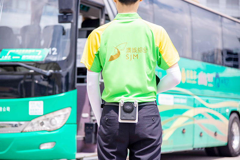 由於澳門夏季持續高溫炎熱,對長時間在露天環境工作的員工健康構成威脅。為保障員工健康,澳娛綜合實行了一系列預防中暑的職安健措施,為每一位穿梭巴士戶外站點的員工配備便攜式掛腰風扇、遮陽裝備、抗熱服、冰袖,以及充足飲用水及清涼能量飲品等,確保員工在酷熱環境下也能保持舒適,此外,澳娛綜合亦不時宣傳預防高溫中暑的職安健訊息,提醒員工緊記防暑降溫,並合理安排輪班工作,確保員工獲得充分休息。