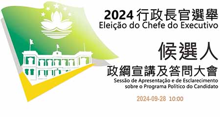 【特訊】2024行政長官選舉“候選人政綱宣講及答問大會”將於9月28日(周六)早上10時至下午1時,在中國與葡語國家商貿合作服務平台綜合體會議廳舉行。