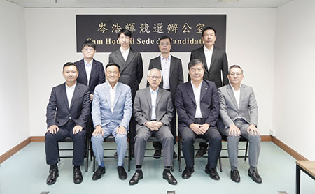 【特訊】第六任行政長官候選人岑浩輝,在競選辦公室副主任陳家良等陪同下,於競選辦公室會見了澳區省級政協委員聯誼會會長馬志成、理事長呂聯苗、監事長龐川等一行十人,就澳門經濟發展及民生議題作深入交流。