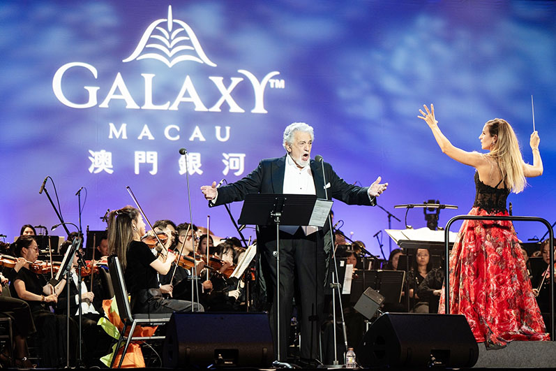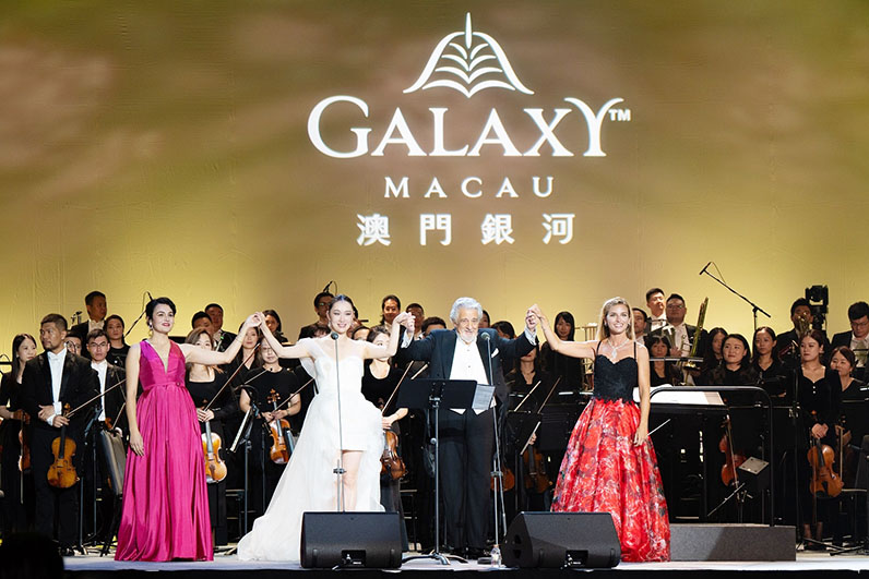 【特訊】備受矚目的「銀河聲薈:多明戈與友歌劇盛宴」於 20 日晚在澳門嶄新會展娛樂地標銀河國際會議中心盛大舉行,吸引了眾多音樂愛好者和文化界人 士共襄盛舉。此次演出是「澳門銀河™」首次呈獻的世界級歌劇盛會,由西班牙傳奇歌唱家普 拉西多·多明戈(Plácido Domingo)與中國和意大利三位炙手可熱的青年音樂家、以及深圳交響 樂團攜手呈獻一場跨文化的音樂藝術交流,令現場觀眾陶醉不已。演出結尾,享譽海內外的著 名男高音歌唱家莫華倫驚喜助陣,四位歌唱家首次同台演出,為整場音樂會畫上圓滿的句點。