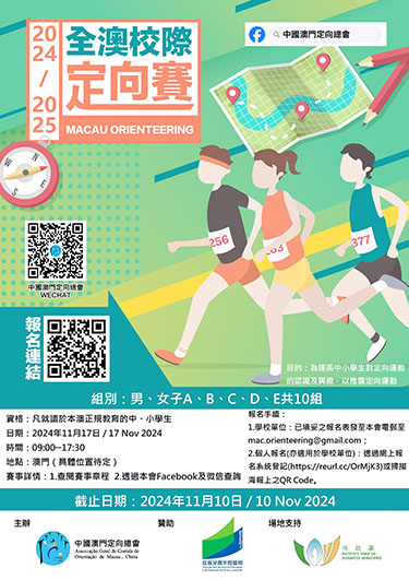 賽事詳情可瀏覽Facebook專頁:「中國澳門定向總會」