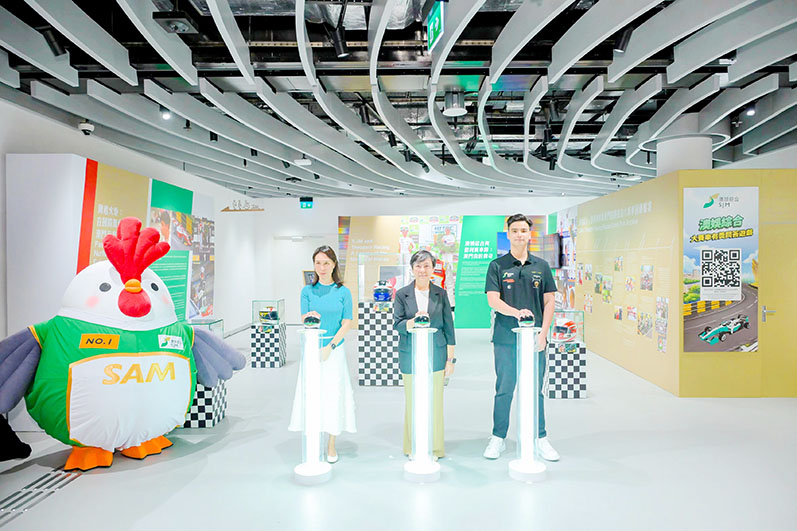 「極速傳奇–車手珍藏展覽」開幕儀式由澳門特別行政區政府旅遊局局長文綺華、 澳娛綜合常務董事何超鳳及澳門賽車手梁瀚昭主禮,逾 50 名本澳學生出席支持 活動,共同投入大賽車的熾熱氛圍。