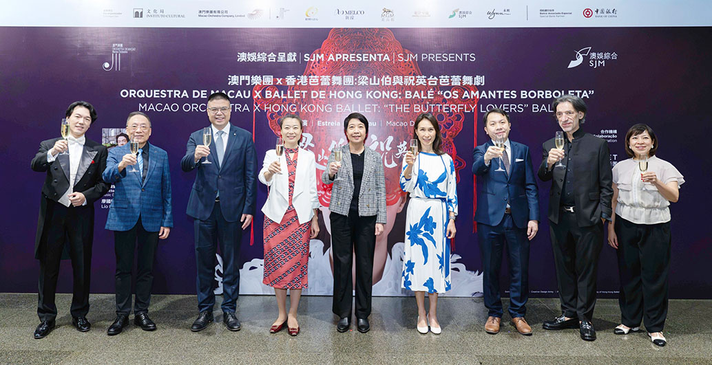 《梁祝》芭蕾舞劇是澳門樂團和港芭攜手演出的項目,創作班底陣容強勁,由港 芭藝術總監衛承天擔任藝術編排,並由港芭駐團的編舞家胡頌威及太太麥靜雯 撰寫劇本及編排舞蹈,配合奧斯卡金像獎設計師葉錦添的舞美設計,加上澳門 樂團在音樂總監兼首席指揮廖國敏帶領下,現場演繹由中國年青作曲家田汨受 《梁山伯與祝英台小提琴協奏曲》啟發創作的動人樂章,引導觀眾沉浸在穿梭古 今中外、虛實交織的華麗藝術世界中,一步步感受梁祝相遇、相愛,以致化蝶 廝守的癡情故事,並藉此體現大灣區及國際藝術家合作的完美典範。