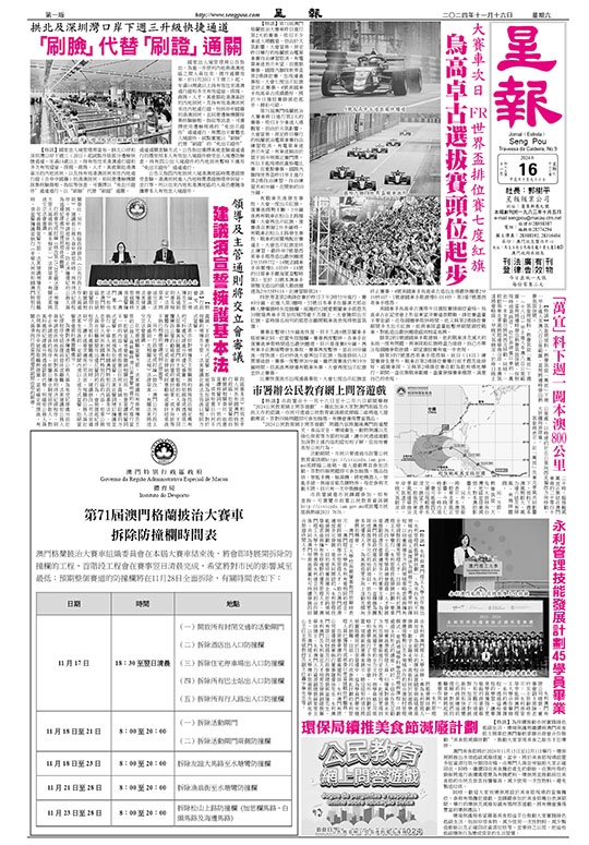 另外,氣象局表示,本澳受一股東北季風正影響,今晚上七時至十一時內港一帶可能會因天文潮出現輕微水浸。展望下週中期一股強烈東北季風抵達華南沿岸,氣溫下降,早晚天氣較涼。