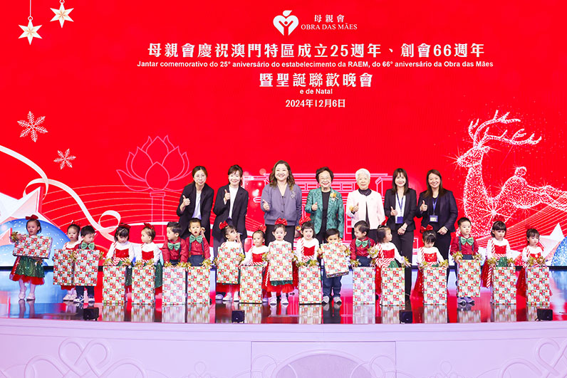 賀定一續表示,母親會創會已66載,一直以來秉承辦會宗旨,致力於慈善事業及長幼服務,透過母親會屬下的八個服務機構,開展幼兒托管照顧、長者專業照護、家援服務及長者文娛康體活動,以具有自身特色的工作模式,為弱勢群體獻上關愛,為社會服務竭盡所能。她感謝特區政府、中聯辦及社會各界對母親會的厚愛,感謝會員與母親會風雨同行,表示日後將繼續秉持初心,為澳門居民提供優質服務。隨後,理事長江陽及副理事長飛曼華分別以中、葡文祝酒,為祖國繁榮昌盛,為澳門經濟繁榮、社會和諧,為大家身體健康、為母親會再創輝煌乾杯!